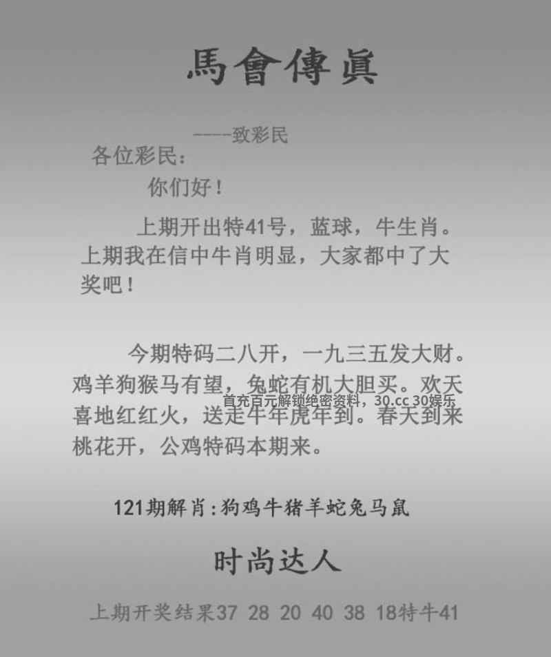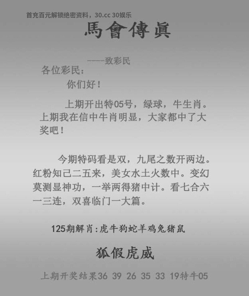 125期马会传真: 今期特码看是双,九尾之数开两边 红粉知己二五来,美女水土火数中 变幻莫测显神功,一举两得猪中计 看七合六一三连,双喜临门一大篇 狐假虎威 解:今期特码看是双,解双肖虎鼠狗猴马龙,一举两得猪中计,解凶丑生肖鼠牛虎猴狗猪 综合:马蛇虎鸡龙羊鼠狗猴 |